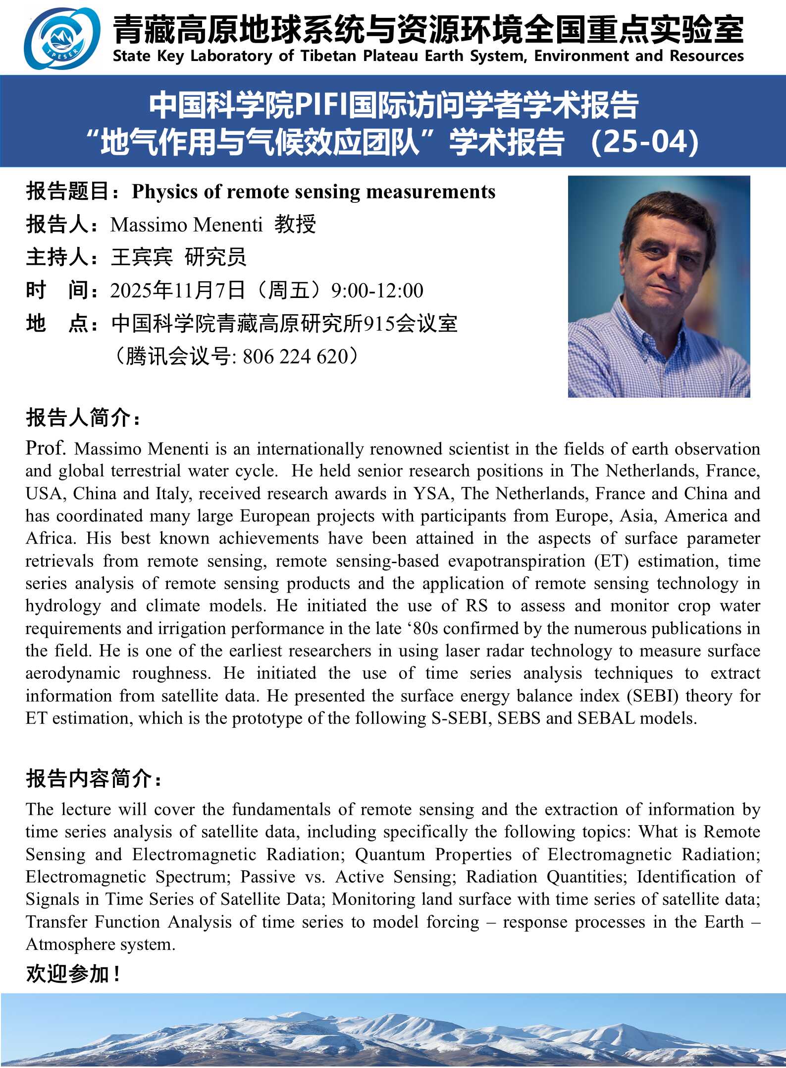 报告题目:Physics of remote sensing measurements