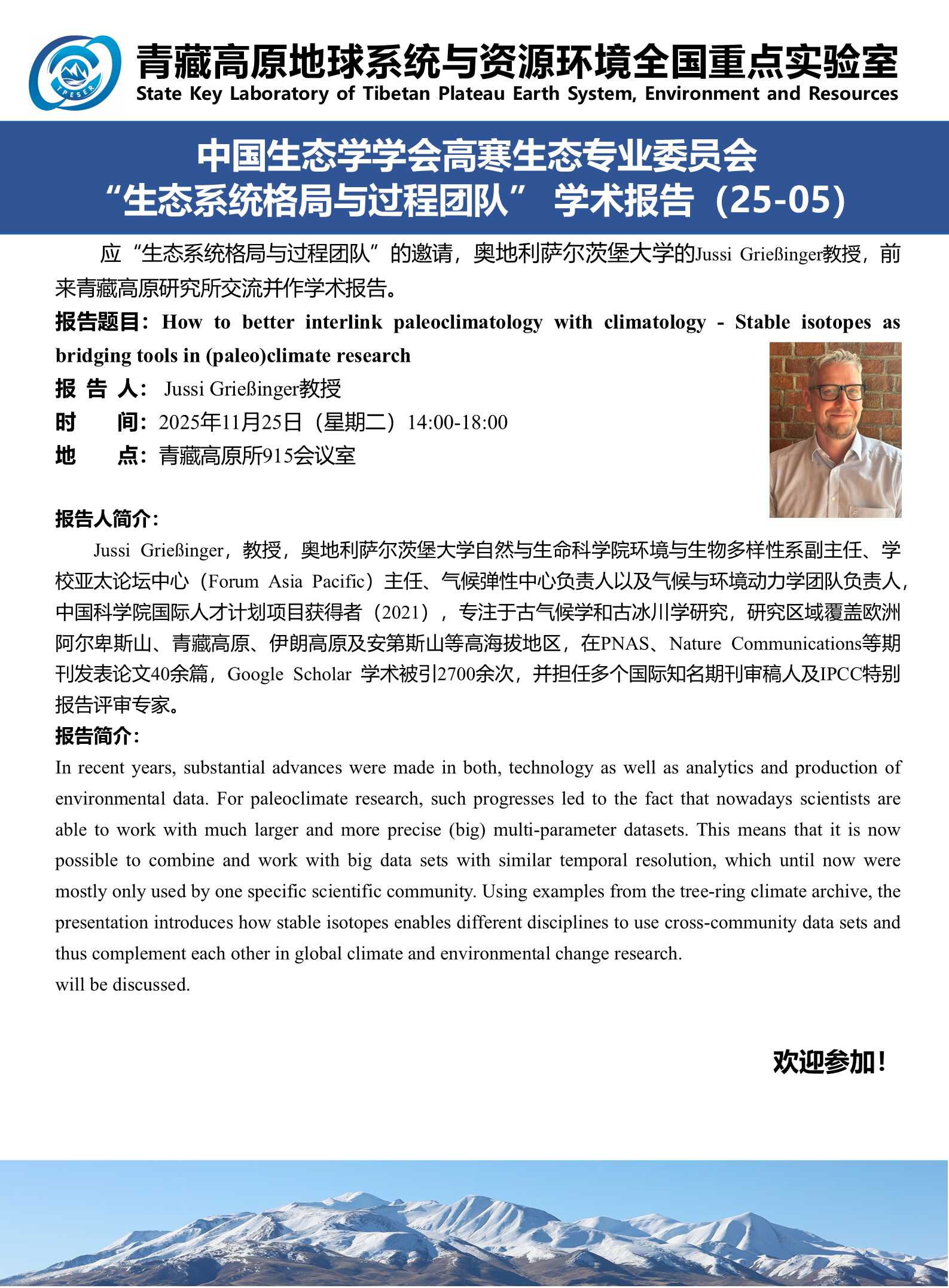 报告题目:How to better interlink paleoclimatology with climatology - Stable isotopes as bridging tools in (paleo)climate research