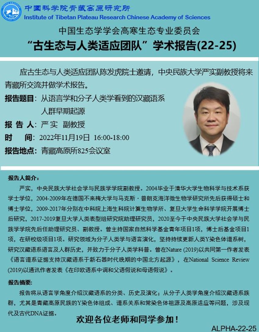 报告题目: 从语言学和分子人类学看到的汉藏语系人群早期起源